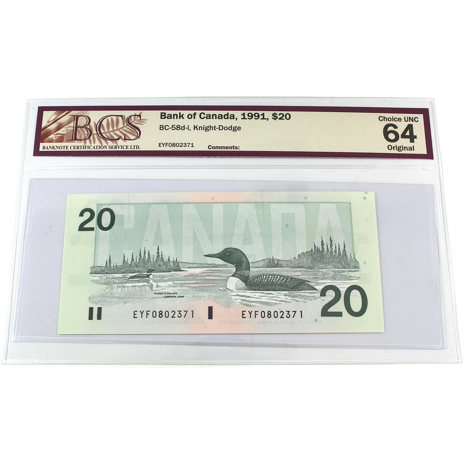 BC-58d-i 1991 $20 BCS CUNC64 Original Knight-Dodge SN:EYF0802371