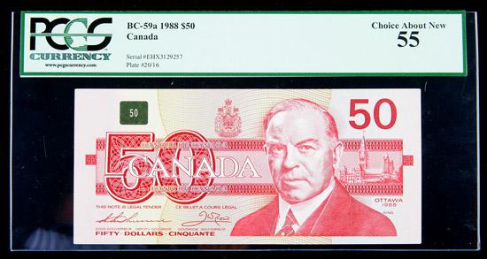 BC-59aA 1988 $50. Replacement Note. PCGS Choice About New 55. A scarce replacement note from the EHX serial number block.