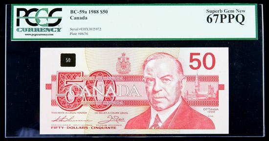 BC-59aA 1988 $50. Replacement Note. PCGS Superb Gem New 67PPQ. A lovely, superb example of this scarcer replacement serial number prefix. It is the first of two consecutive Superb Gems here offered.