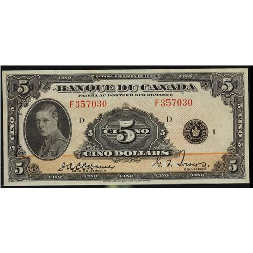 BC-6 1935 $5 #F357030. Popular french issue. VF-EF
