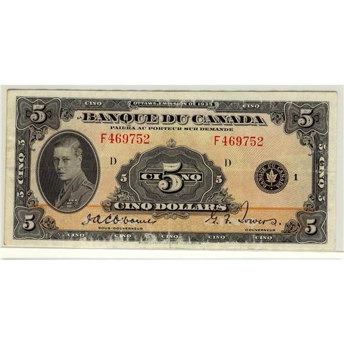 BC-6, 1935 $5 #F469752, VF-EF. A nice issue in the grade with slight discoloration a bottom border of note.