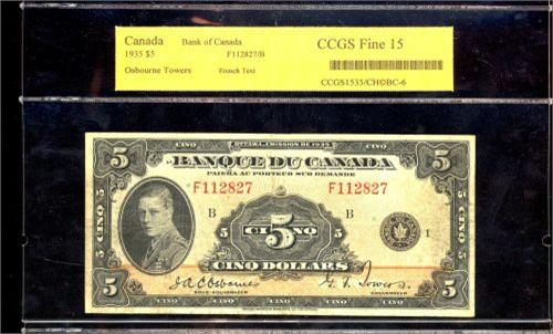 BC-6 1935 $5 French text F112827 "CCGS F15"