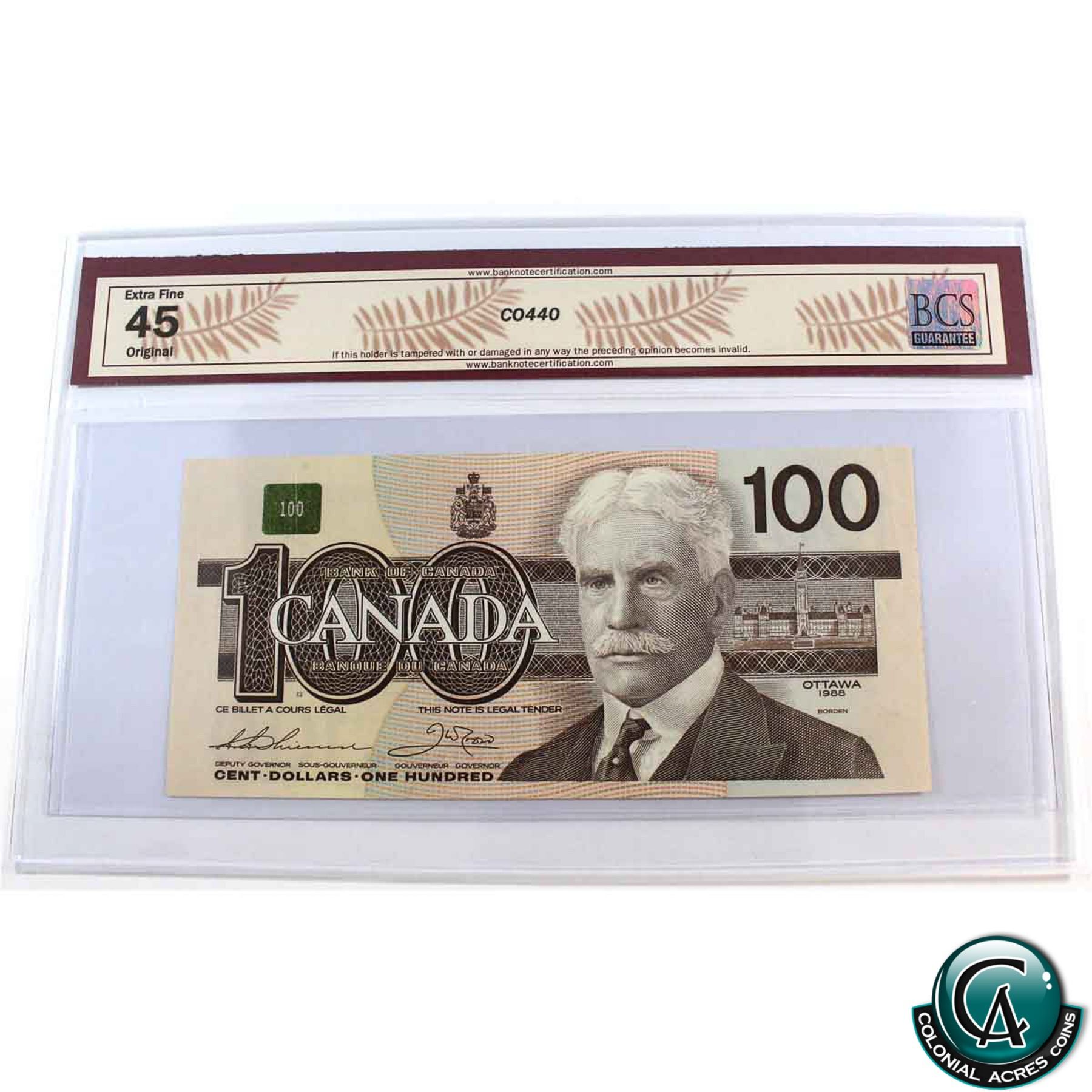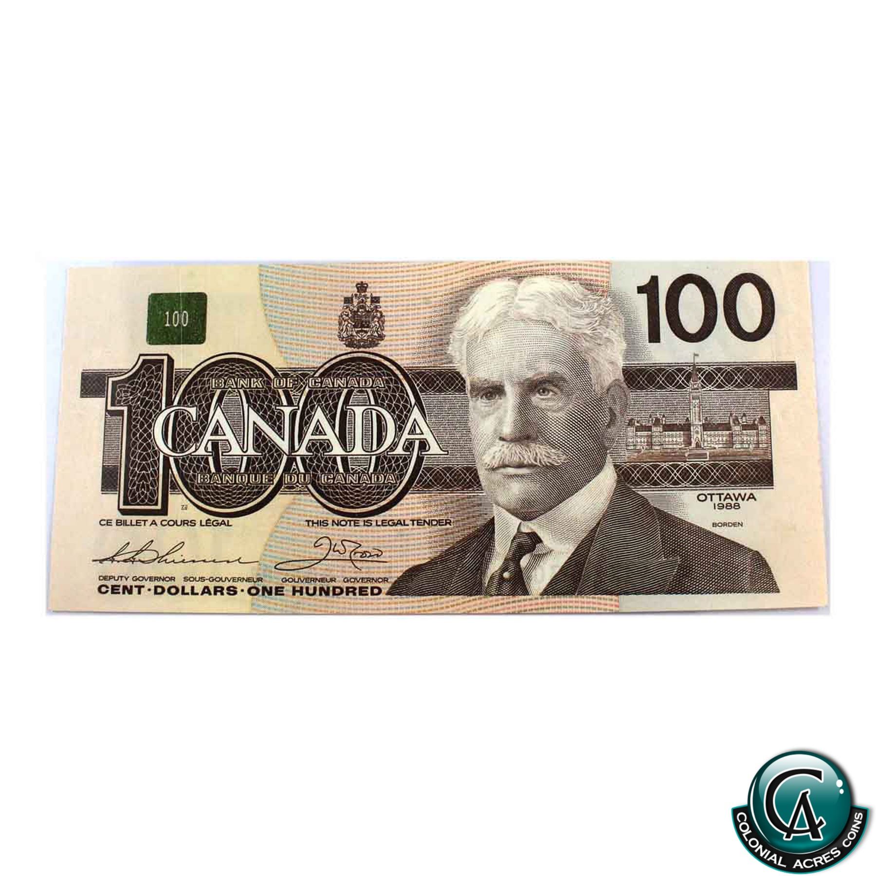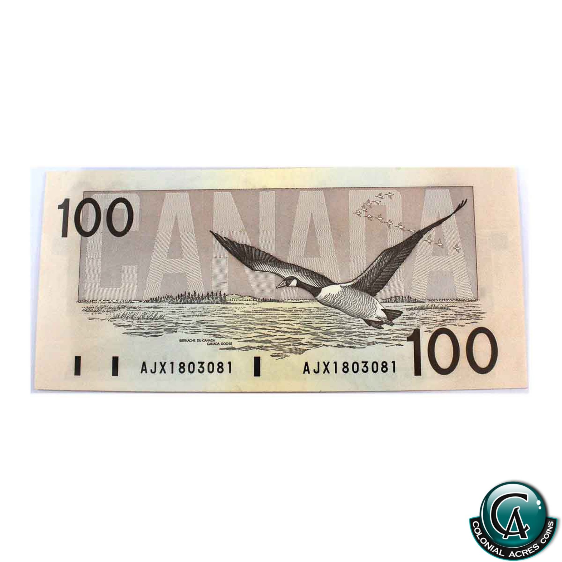 BC-60aA-N1-iii 1988 Bank of Canada $100, Thiessen-Crow, Hidden Back Position Number, Replacement, 4 Digit RADAR, S/N: AJX1803081 BCS EF-45 Original.