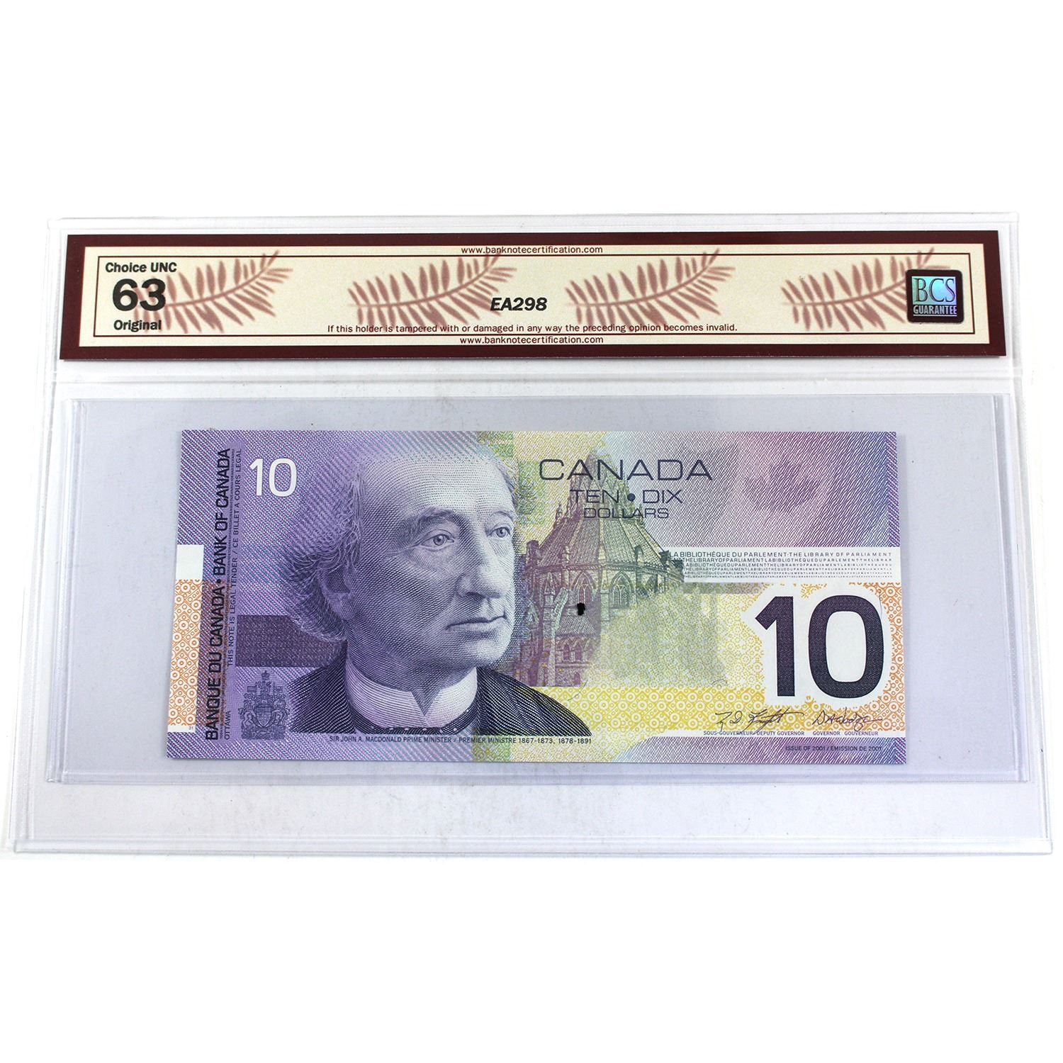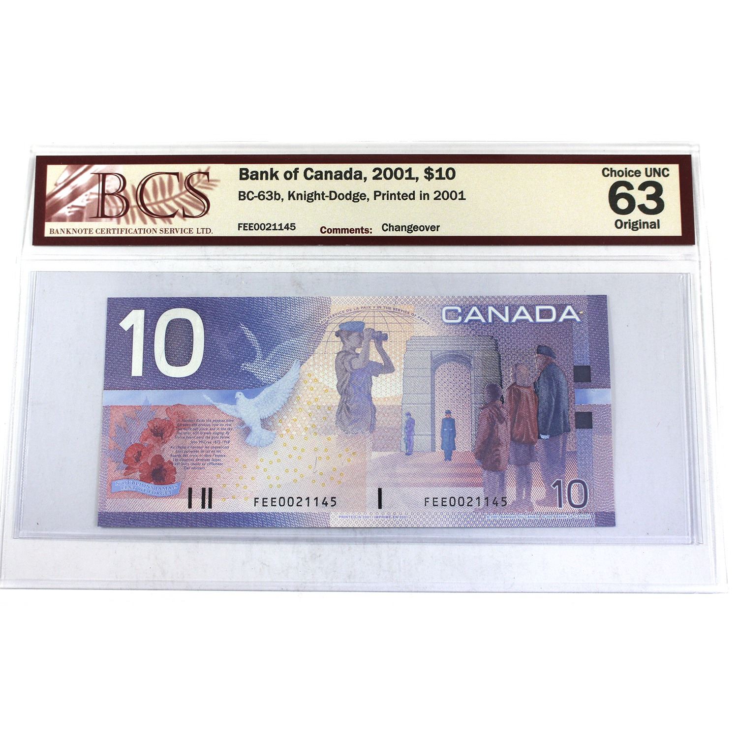 BC-63b 2001 $10 BCS Certified CUNC63 Original, Knight-Dodge, Changeover, Printed 2001, FEE0021145