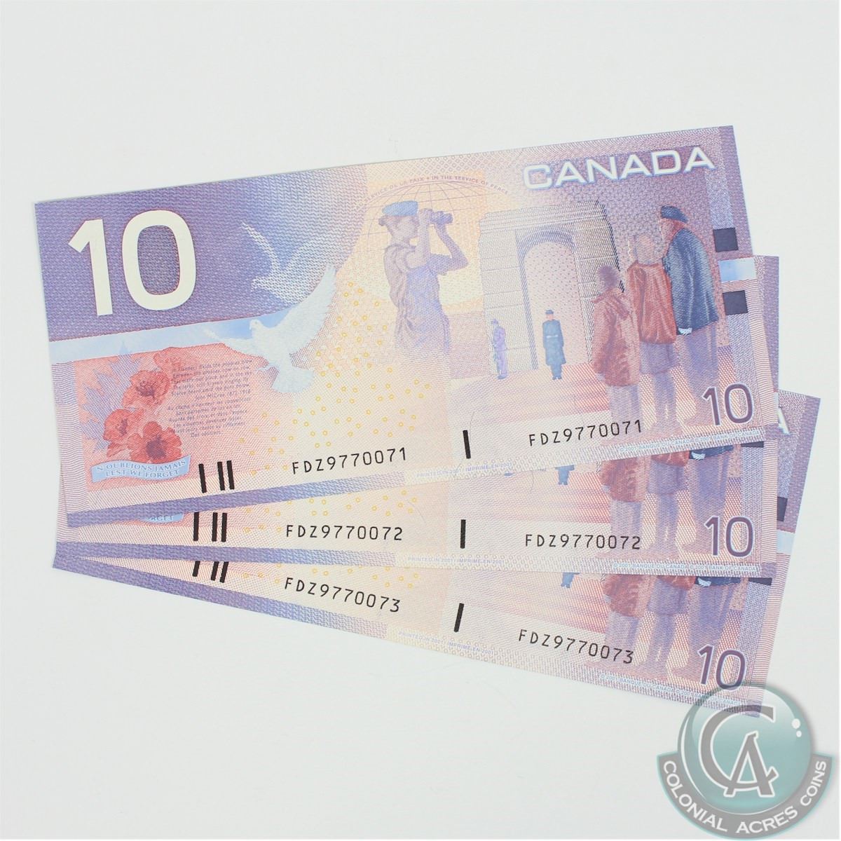 BC-63b. 3 Consecutive 2001 Bank of Canada $10, Knight-Dodge, S/N: FDZ9770071-73 all in UNC Condition. 3 pcs.