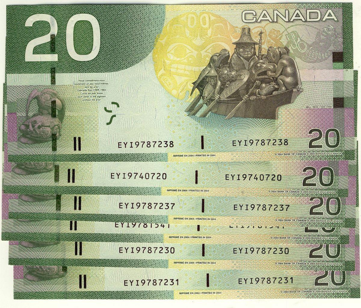 BC-64aA-i 2004 $20 EYI 9.7M, lot of 6 Gem Unc.notes