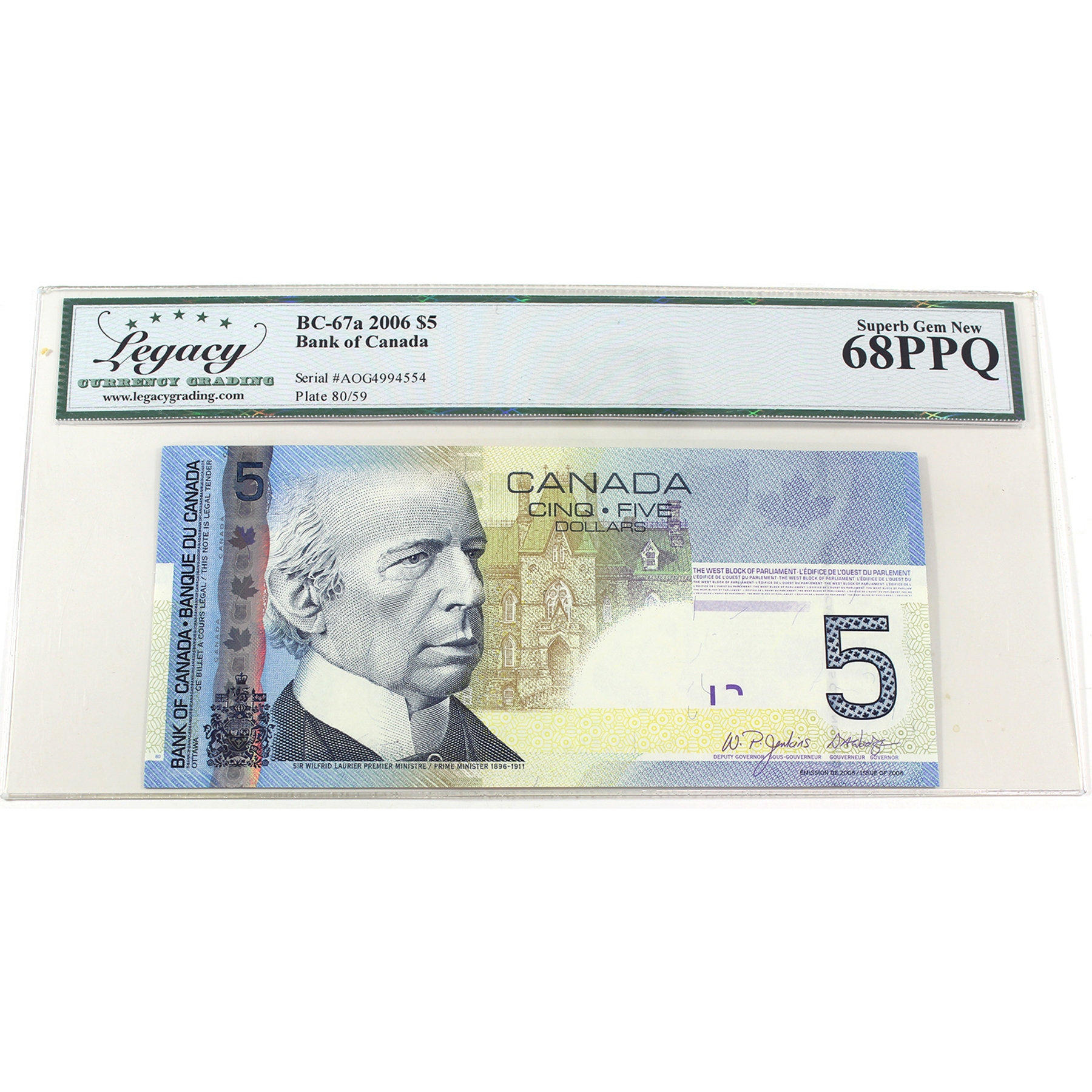 BC-67a 2006 $5 Legacy Superb GEM UNC68 PPQ Jenkins-Dodge SN:AOG4994554