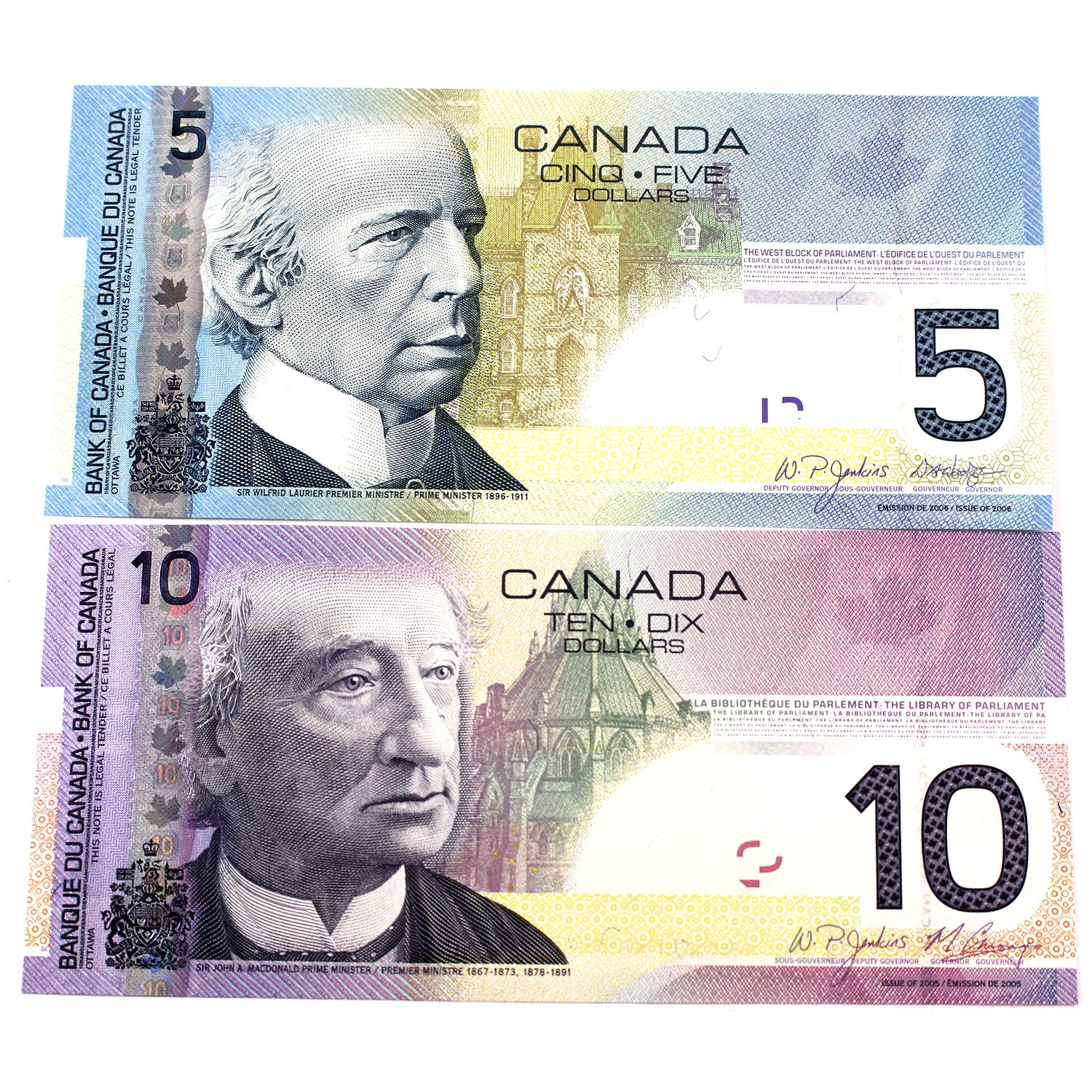 BC-67aA 2006 $5 & BC-68bA 2008 $10 Replacement Notes - APF2005106 (2.000-2.040M) & BTW2138575 (2.135-2.160M) UNC or Better. 2pcs