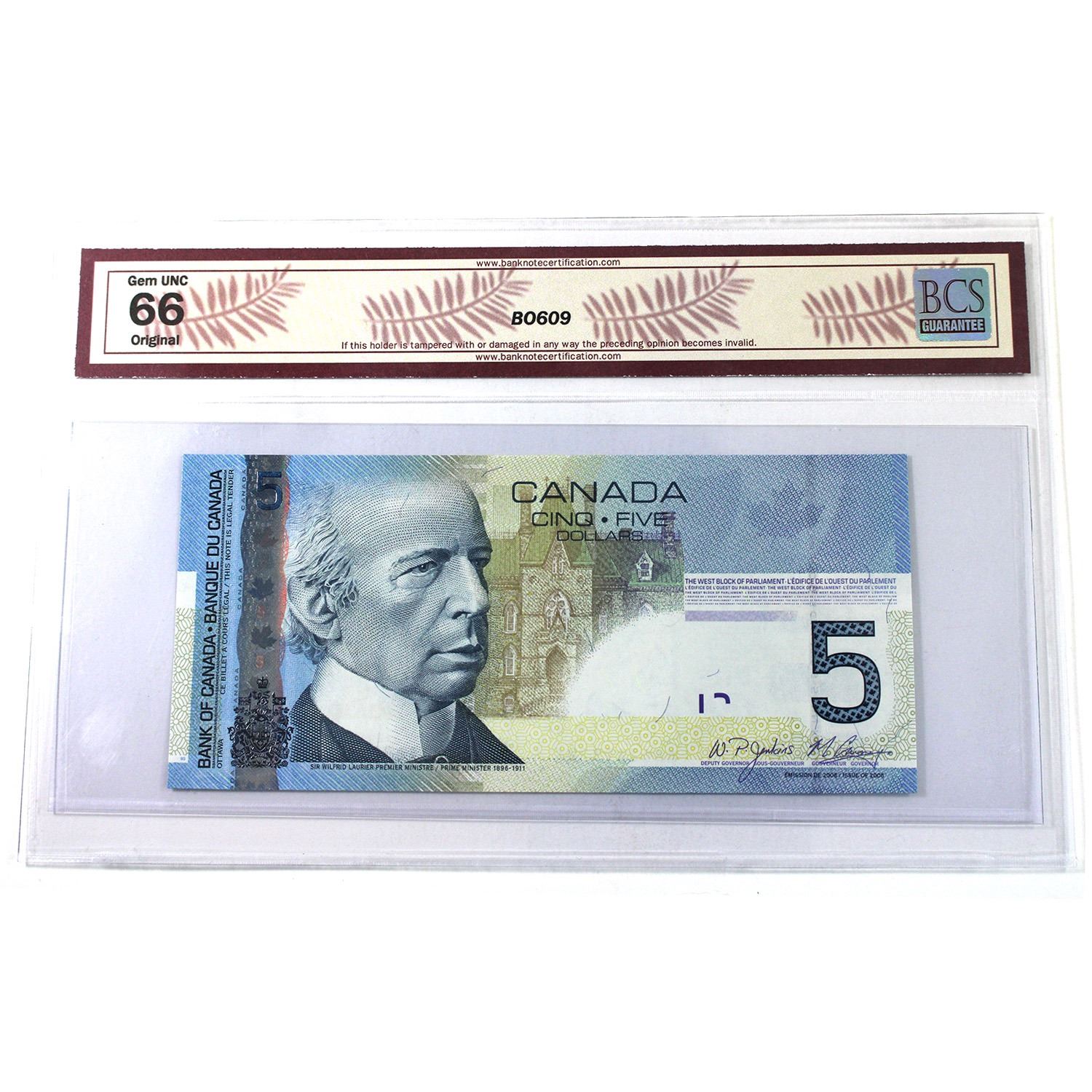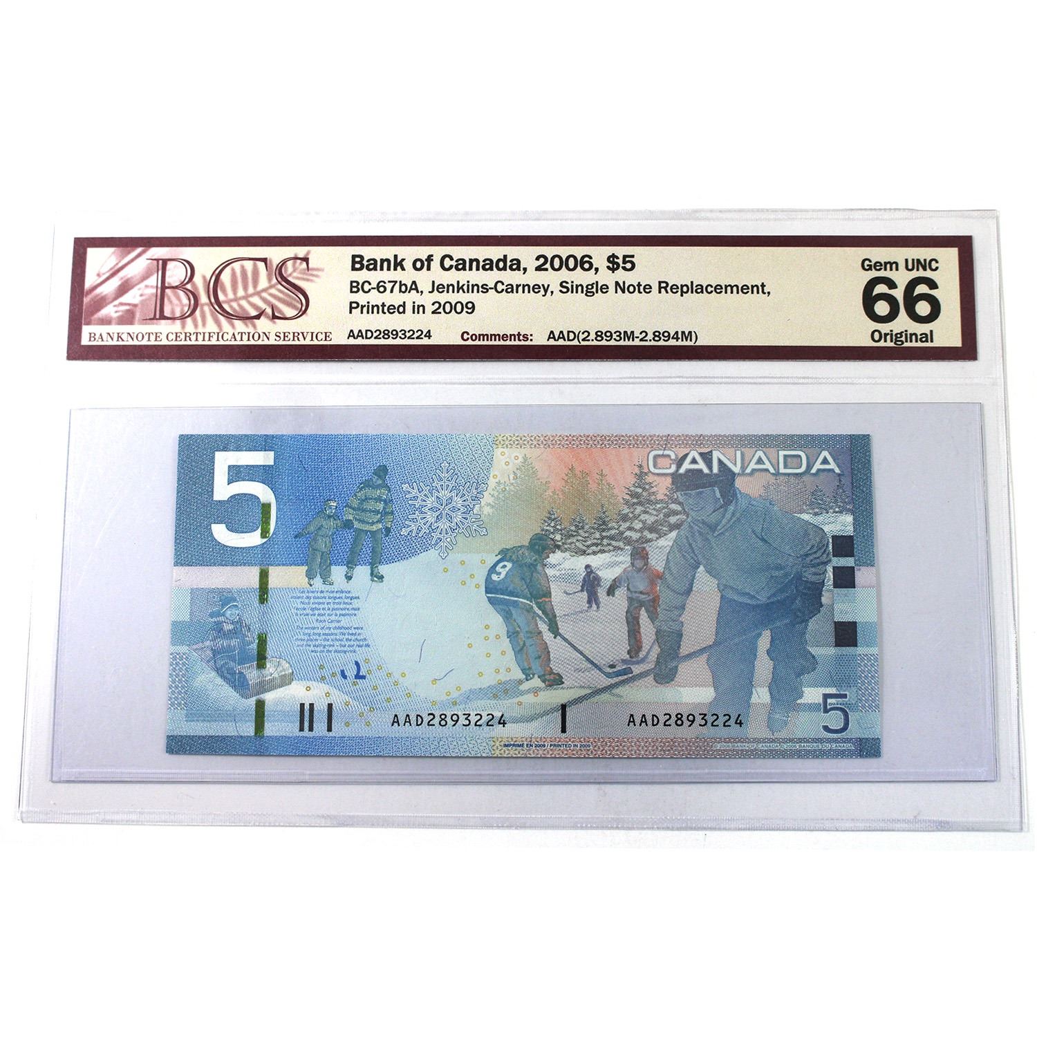 BC-67bA 2006 $5, Jenkins-Carney, Single Replacement, Printed 2009, AAD2893224 BCS GEM UNC66 Original