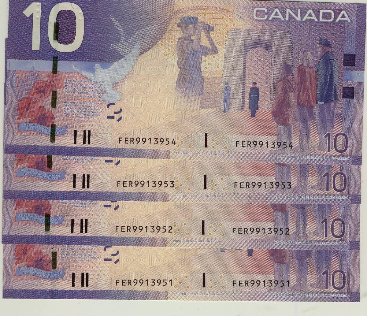 BC-68aA-i 2005 $10 #FER. Lot of 4 consecutive notes. Gem UNC