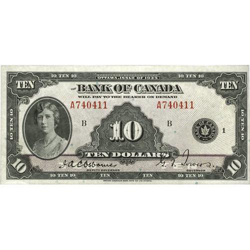 <B>BC-7 $10 1935</B></I><BR>A high grade $10 English Text example. <B>About Uncirculated.</B></I><BR><I>From The Halton Lake Collection</B></I>