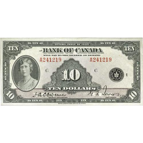 <B>BC-7 $10 1935</B></I><BR>There is a bit of light handling, but this well centered English text beauty comes with loads of original embossing and good centering. <B>Crisp Uncirculated.</B></I><BR><I>From The Halton Lake Collection</B></I>