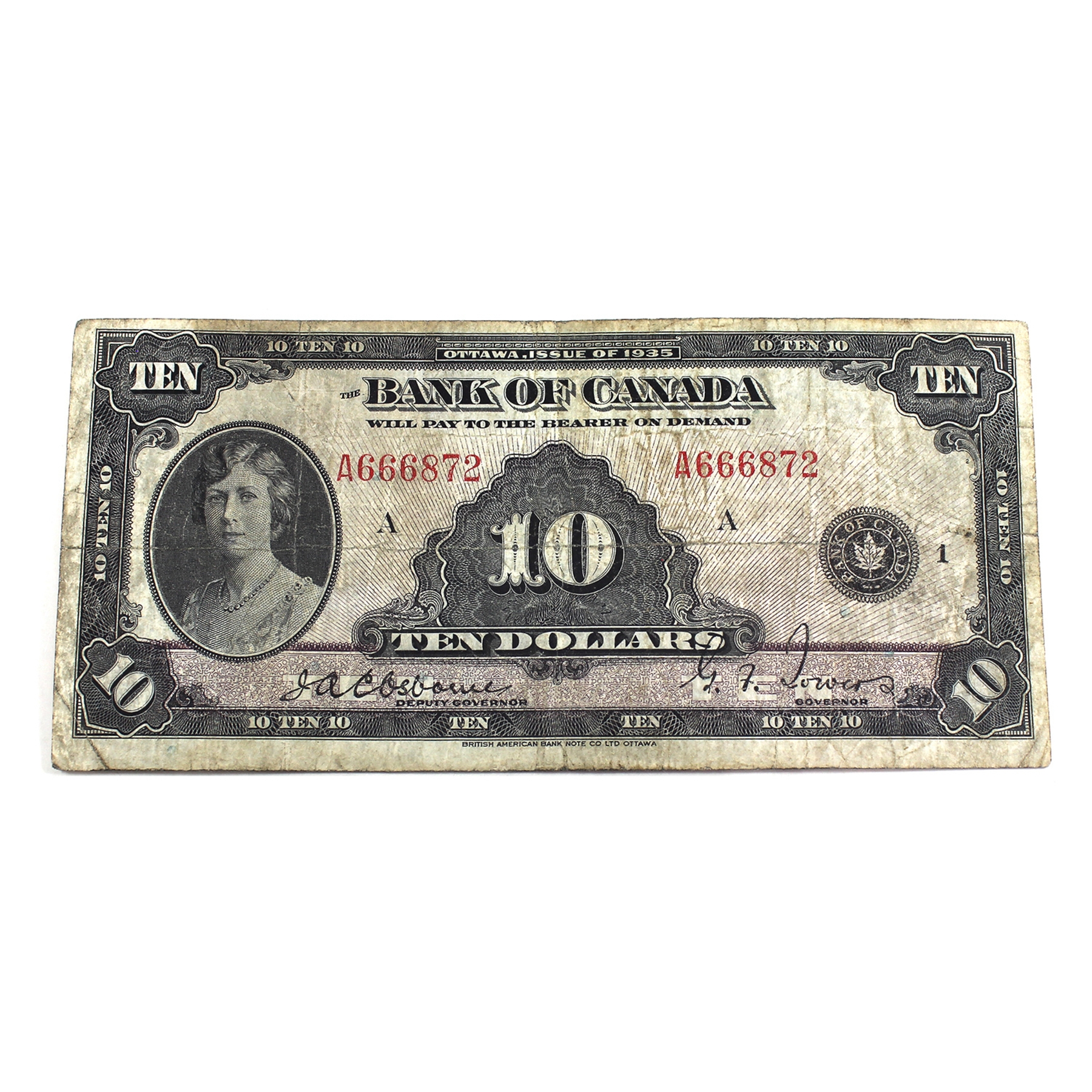 BC-7 1935 $10 English CCCS F15 Osborne-Towers SN:A666872 Check Letter A