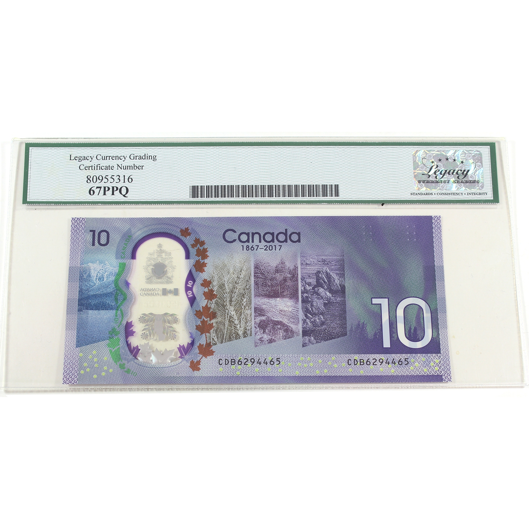 BC-75 2017 $10 Canada 150 Legacy Superb GEM UNC67 PPQ Wilkins-Poloz SN: CDB6294465