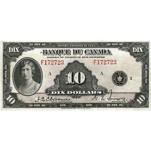 <B>BC-8 $10 1935</B></I><BR>A nice grade French Text $10. <B>Extremely Fine-About Uncirculated.</B></I><BR><I>From The Halton Lake Collection</B></I>