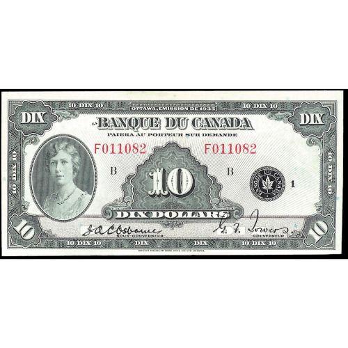 BC-8 1935 $10 French text F011082. CCCS UNC-60. A nice and bright uncirculated example. Rare and seldom offered!