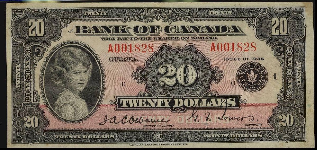 BC-9a 1935 $20 English text Large seal A001828. VF, a very nice example