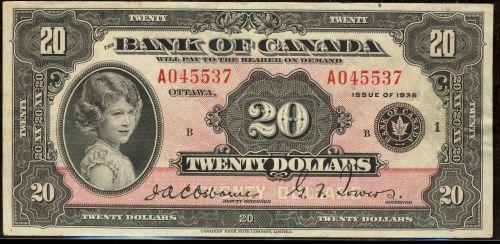 BC-9a 1935 $20 "Large seal" A045537. A bright EF example. Very scarce!