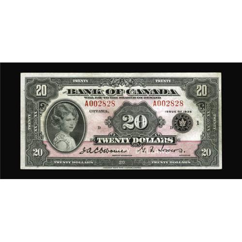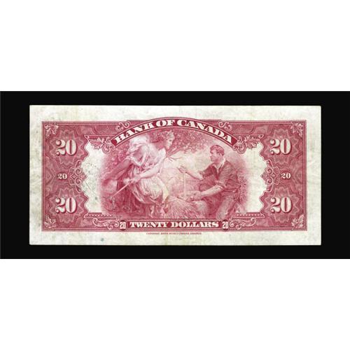 <B>BC-9a $20 1935</B></I><BR>A very nice example of the Large Seal variety, which is by far the scarcer of the two seal varieties found on this denomination's English Text issue. This is a very scarce note in high grade, and this brightly colored example is most definitely that. <B>Extremely Fine.</B></I><BR><I>From The Wellington Collection</B></I>