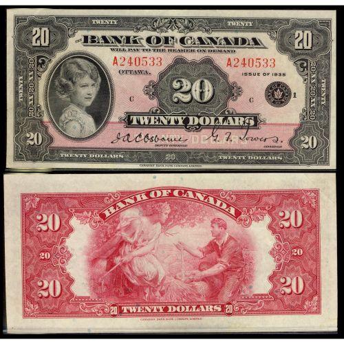 BC-9b 1935 $20 English Small seal #A240533 EF-AU. Bright with vibrant colours. A lovely example