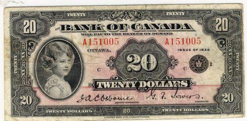 BC-9b 1935 $20 English text "Small seal" A151005. A nice F+.