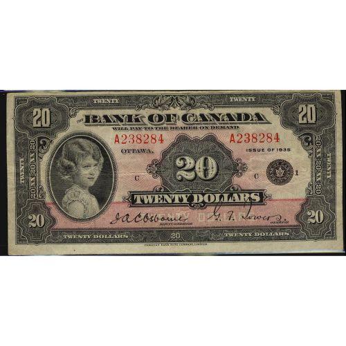 BC-9b 1935 $20 English text Small seal A238284. F+