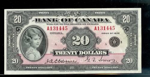BC-9b 1935 $20 English text small seal A082813. A bright EF+. Rare this nice!
