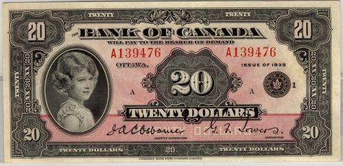 BC-9b 1935 $20 "Small seal" A139476. A bright EF to EF+ example. Very scarce!