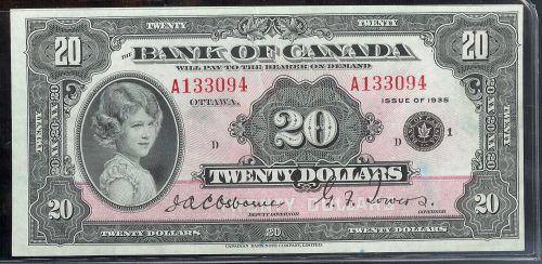 BC-9b 1935 $20 "Small seal" English text A133094. Lovely and original EF+ example. Bright and vibrant colours. Scarce this nice.