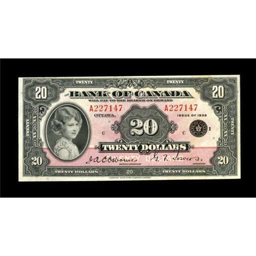 <B>BC-9b $20 1935</B></I><BR> All 1935 $20 notes are scarce to rare, with this English Text small seal example the most available of the three varieties. This is a high end piece which looks better than its technical grade would indicate. <B>Extremely Fine-About Uncirculated.</B></I> <BR><BR><b>Shipping:</b> Coins & Currency (<a target="_blank" href="http://www.heritageauctions.com/common/shipping.php">view shipping information</a>)