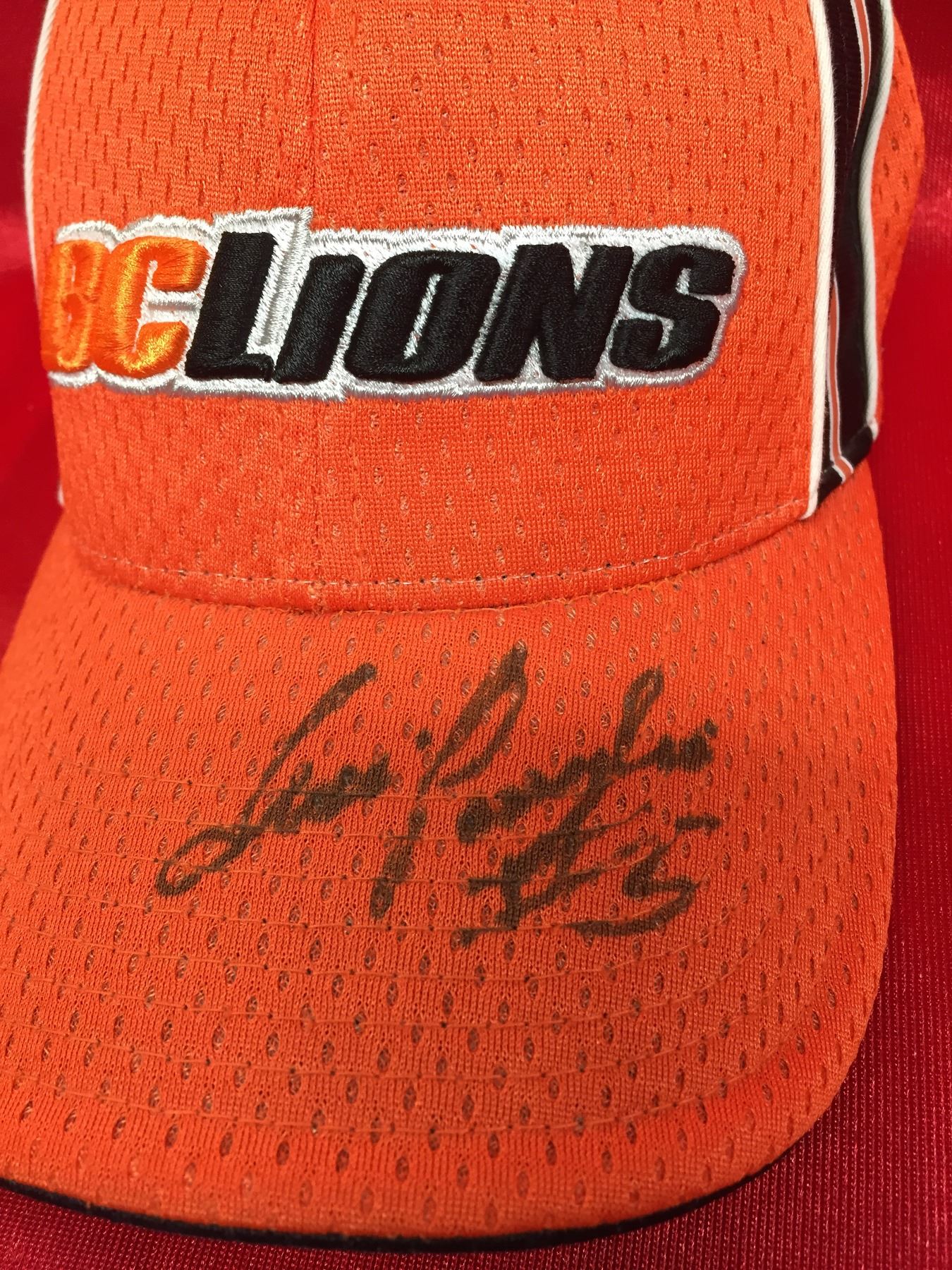 BC Lions Ball Cap Signed by Lui Passaglia Number 5 n Very Good Shape Canadian Football Hall of Fame, 2004. Lui Passaglia was the placekicker/punter for the BC Lions of the C F L for 25 years .