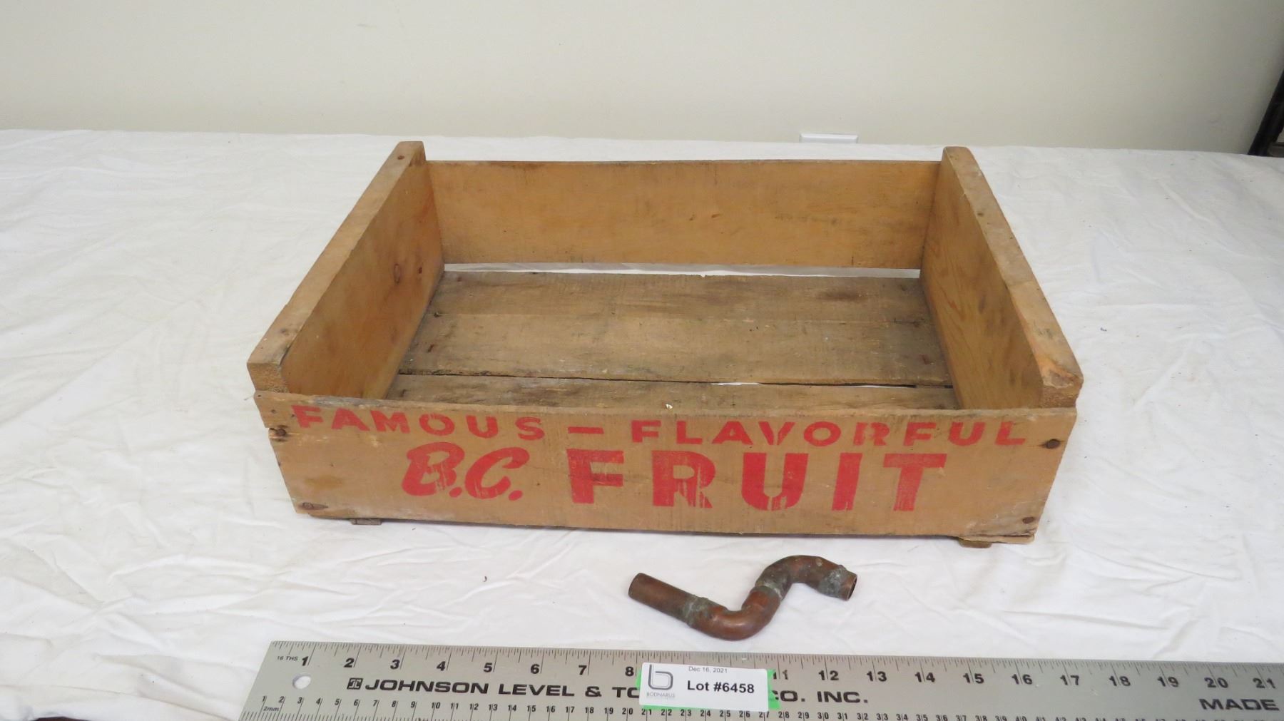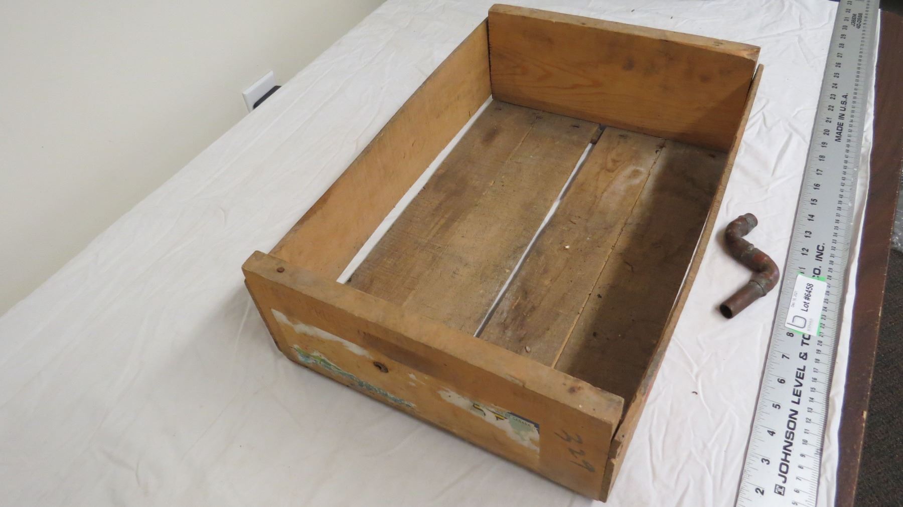 BC wooden apple crate + piece of copper