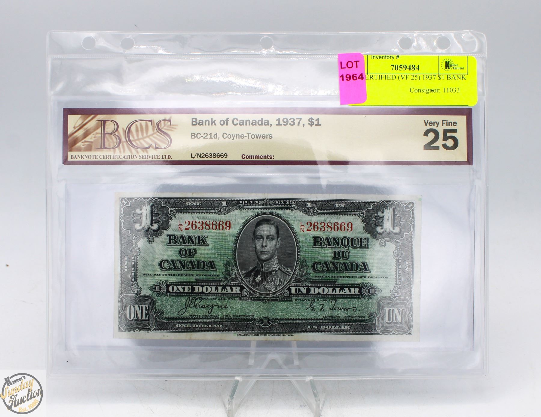 BCS CERTIFIED (VF 25) 1937 $1 BANK NOTE