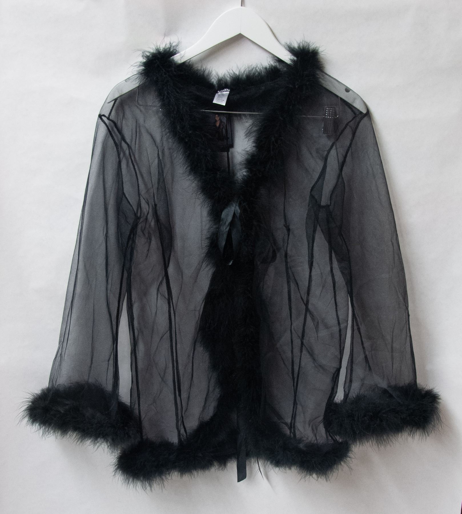 BE WICKED BLACK FEATHER LINED HALF ROBE SZ SMALL