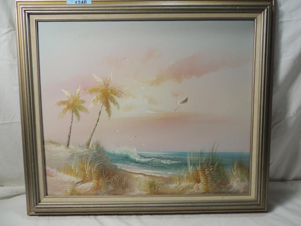 BEACH PAINTING SIGNED KART. BEACH PASTEL PAINTING SEAGULS, FRAMED. 25 X 29 NICE FRAME. AS SHOWN.SEE PHOTO FOR MORE DETAILS