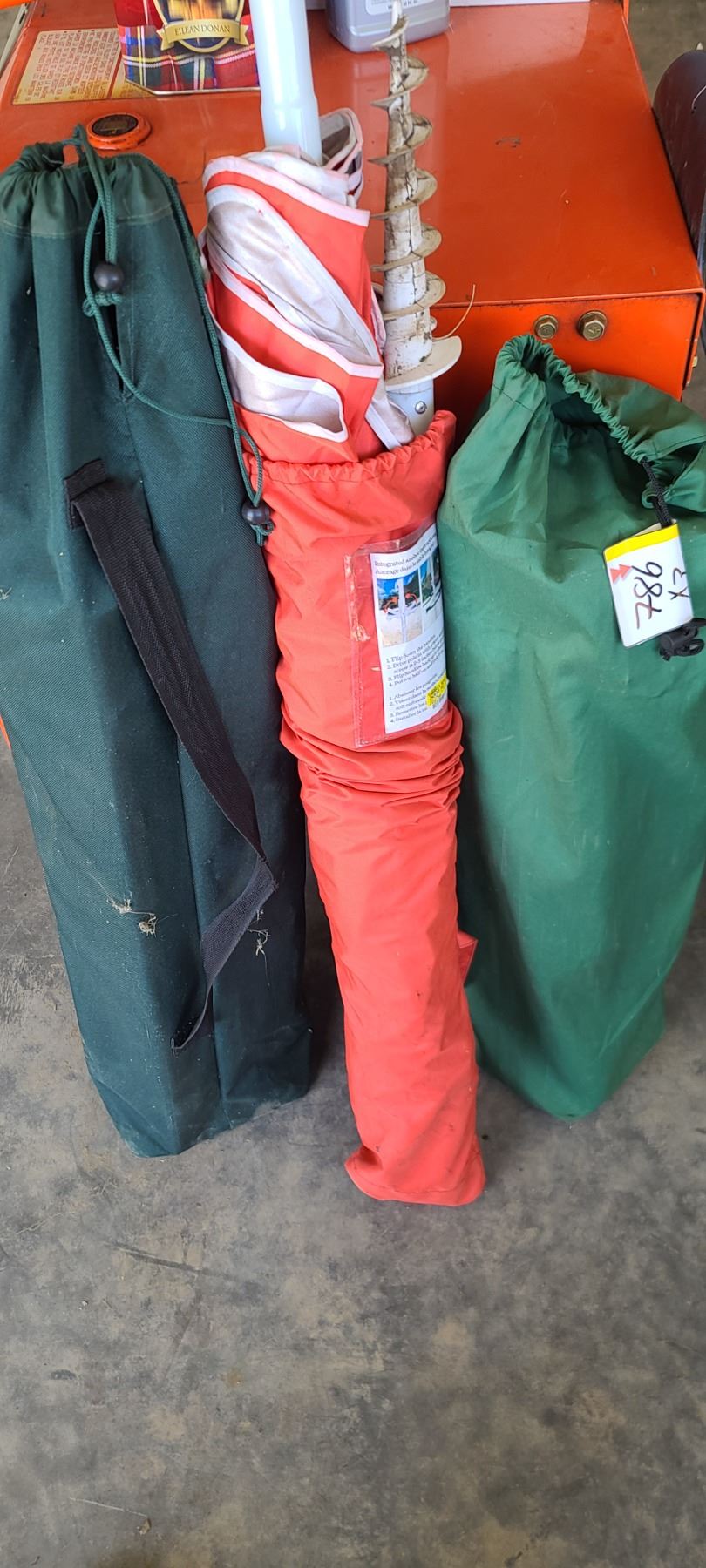 BEACH UMBRELLA AND CAMPING CHAIRS
