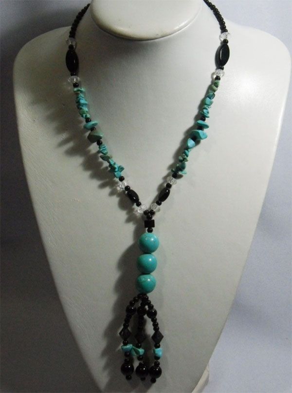 BEADED 311.00CTW BLUE TURQUOISE AND BLACK ONEX LONG STR **|**|** BEADED 311.00CTW BLUE TURQUOISE AND BLACK ONEX LONG STRAND NECKLACE 20INCH ; MSRP: $0