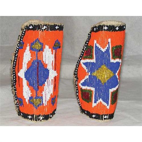 Beaded Apache wrist cuffs lined with muslin and measuring 7.5'' tall.
