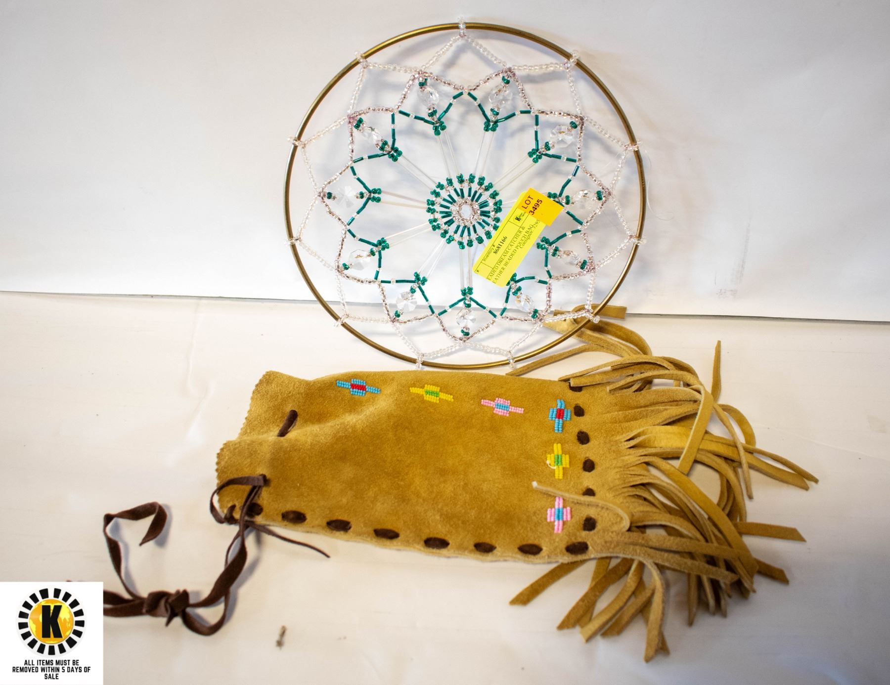 BEADED DREAM CATCHER & LEATHER BEADED POUCH BAG