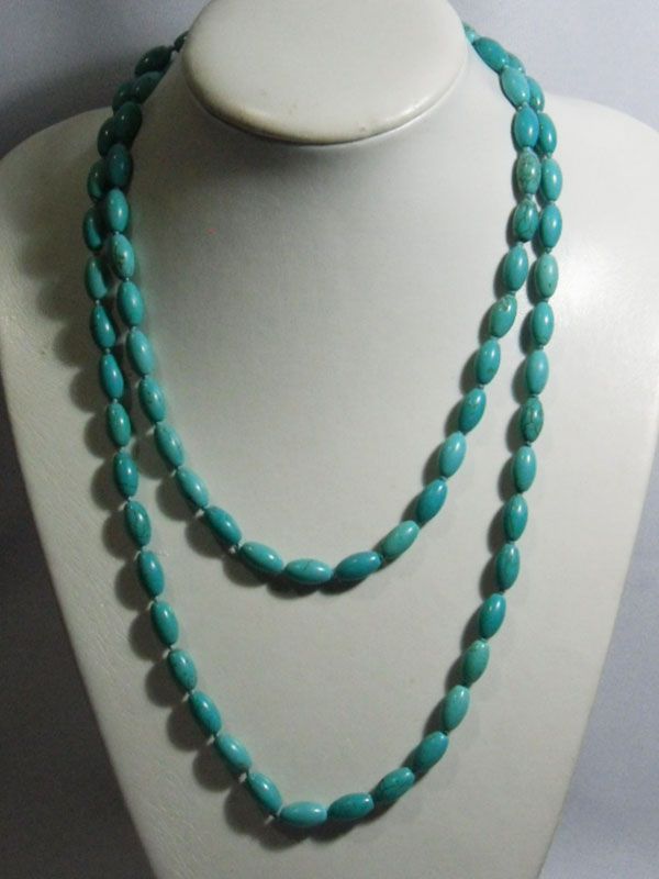 BEAN-SHAPED 426.00CTW BLUE TURQUOISE LONGSTRAND NECKLAC **|**|** BEAN-SHAPED 426.00CTW BLUE TURQUOISE LONGSTRAND NECKLACE 22INCH ; MSRP: $0