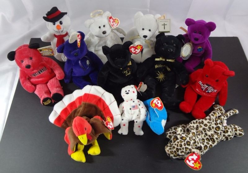 BEANIE BEAR LOT - 9 TY BEANIES, 4 - MISC - MOST WITH TAGS, PRINCESS DI & HALO,