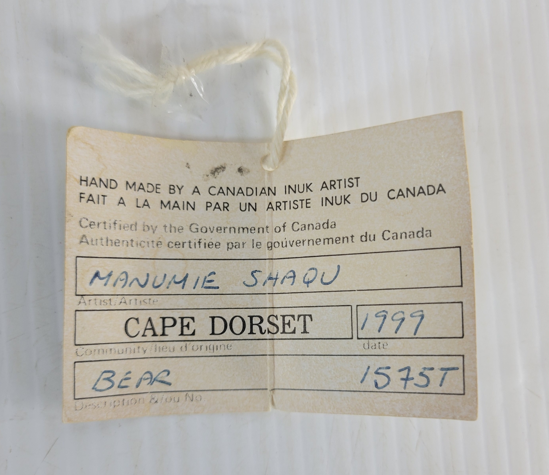 NOTE: 4 X 9 X 14IN - MADE IN CAPE DORSET - CIRCA 1999