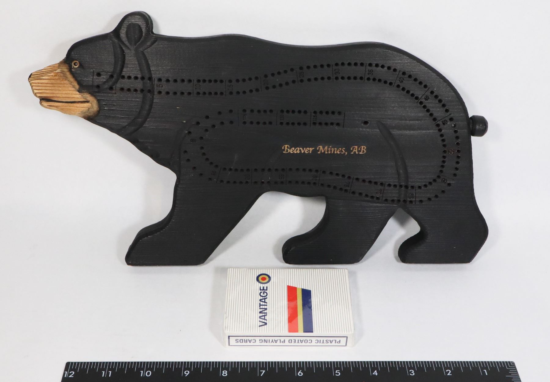 BEAR CRIBBAGE BOARD, NEW CARDS - PEGS IN TAIL