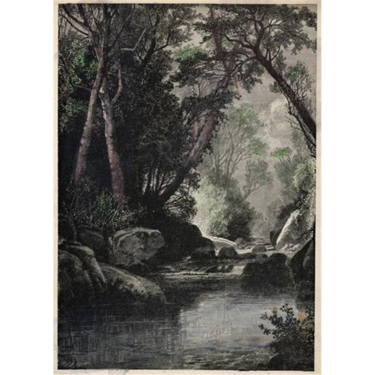 BEAR RIVER NEAR BETHEL MAINE from a collection of rare prints, many one of a kind in that they are hand-colored. Each print from the collection were literally discovered in the attic of a South Carolina pre-civil war mansion. All of the prints are in excellent condition, the hand-coloring as vivid as the prints themselves are rare. Each print was made by carving the scene, in reverse, into a wood block. Rare, fine condition and below market value with an estimate of $200 - $400. Mearsures 12.5in x 9.5in MWF1281