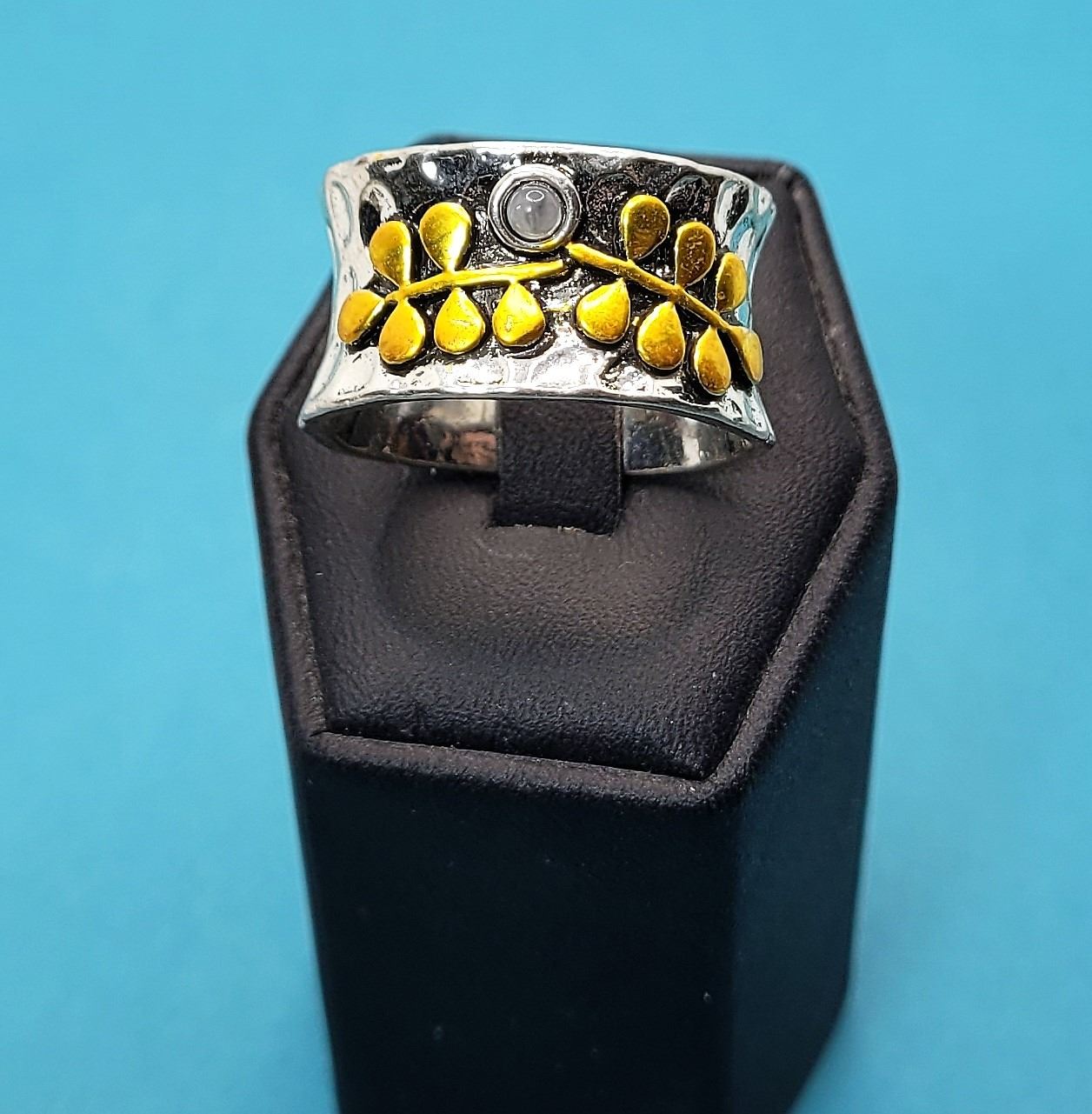 ACCENT & GOLD TONE RAISED LEAVES RING, SIZE 11. JEWELLERY