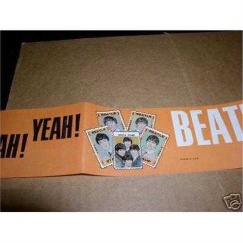 THIS IS THE ORIGINAL BANNER THAT THE STORES USED TO DISPLAY THE HALLMARK SET OF BEATLES STAMPS. THERE IS 1 BAD SPOT BY THE YEAH YEAH YEAH SAYINGS. THE REST IS EXCELLENT. A VERY HARD COLLECTIBLE TO FIND IN THIS GOOD OF A CONDITION.