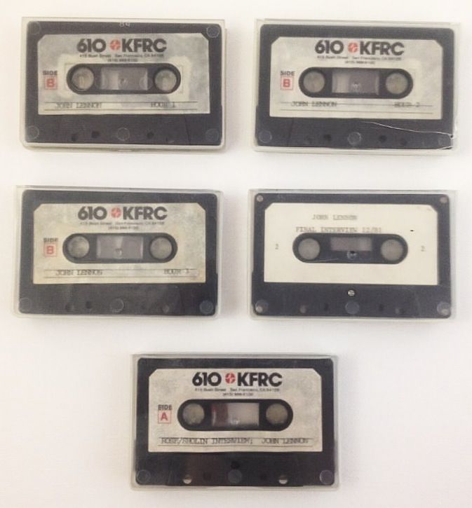 ON THE AFTERNOON OF DECEMBER 8TH FOLLOWING JOHN LENNON AND YOKO ONO'S FAMOUS PHOTOSHOOT WITH THE PHOTOGRAPHER ANNIE LEBOVITZ JUST HOURS BEFORE LENNONS TRAGIC MURDER IN FRONT OF HIS APARMENT IN MANHATTEN JOHN LENNON COMPLETED HIS LAST INTERVIEW WITH DAVE SHOLIN AND THE STAFF OF 610 KFRC. THE INSIGHTFUL INTERVIEW LASTED ABOUT 3 HOURS. THIS LOT INCLUDES 3 ORIGINAL CASSETTE TAPES FEATURING THE LAST INTERVIEW JOHN LENNON GAVE TO THE RADIO STATION 610 KFRC. THE TAPES READ JOHN LENNON HOUR 1, JOHN LENNON HOUR 2 AND JOHN LENNON HOUR 3. ALSO INCLUDED IS A CASSETTE TAPE WHICH WAS PUT TOGETHER AFTER LENNONS DEATH AND A CASSETTE TAPE LABELED ROSE/ SHOLIN INTERVIEW: JOHN LENNON.