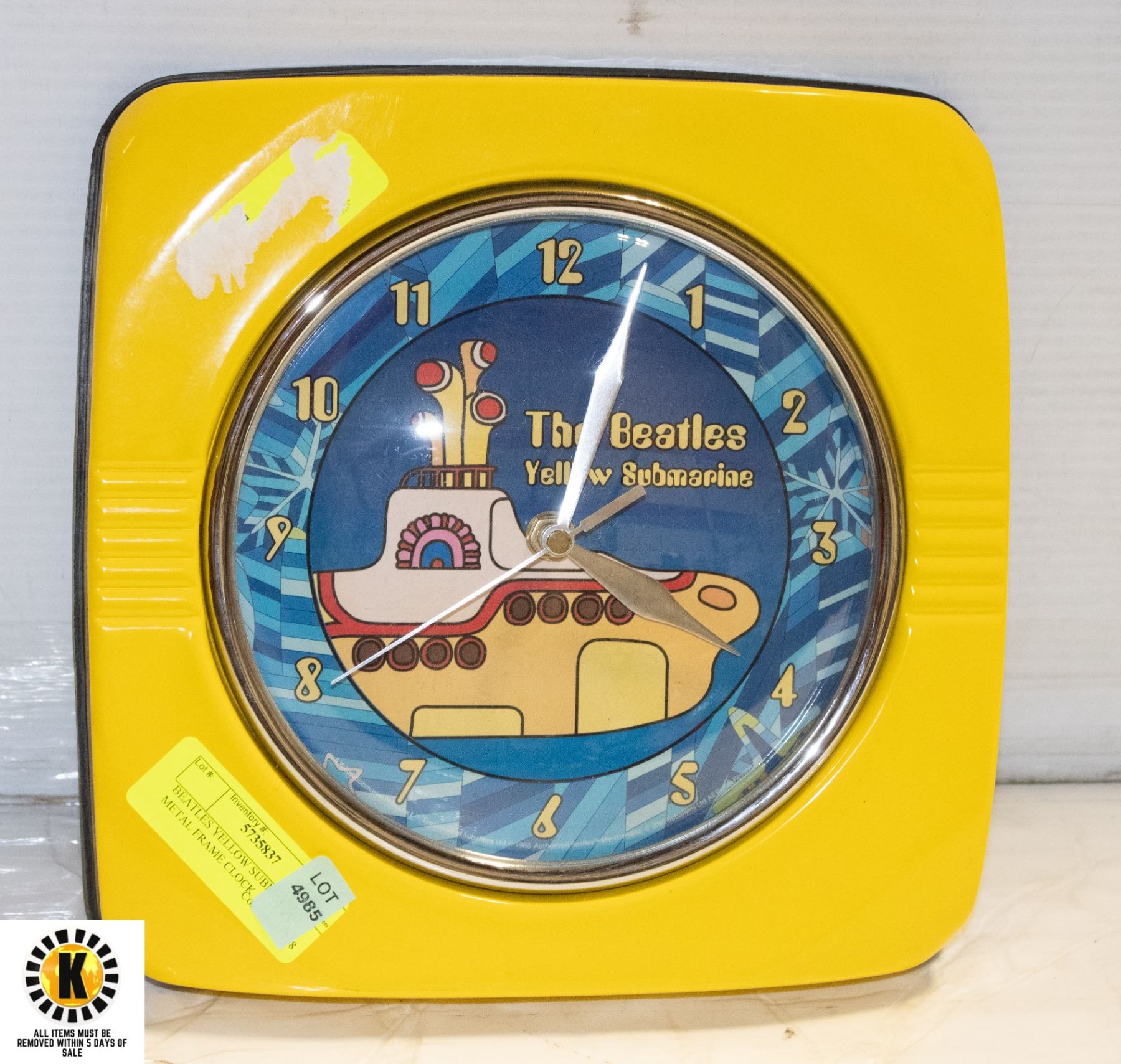 BEATLES YELLOW SUBMARINE METAL FRAME CLOCK