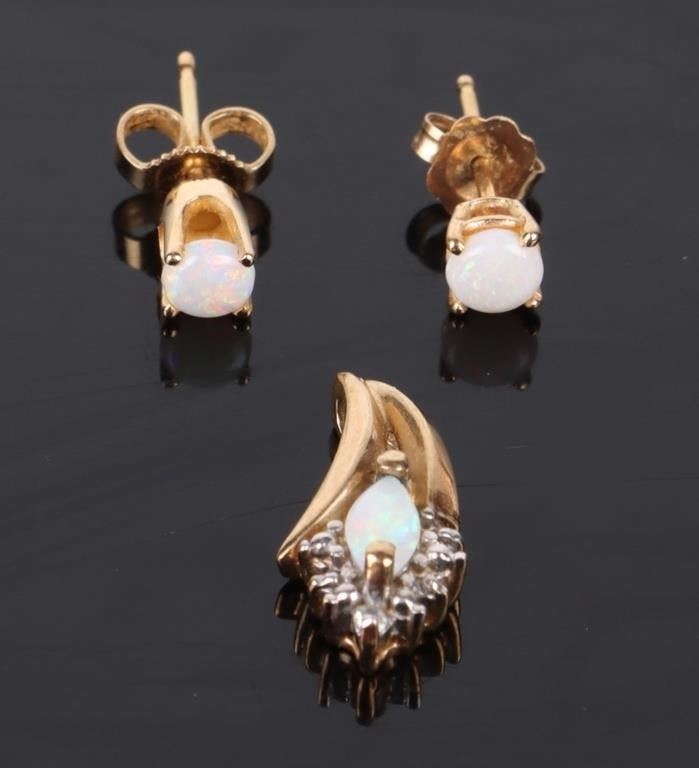 Beautiful 14K opal stud earrings and an opal pendant set.