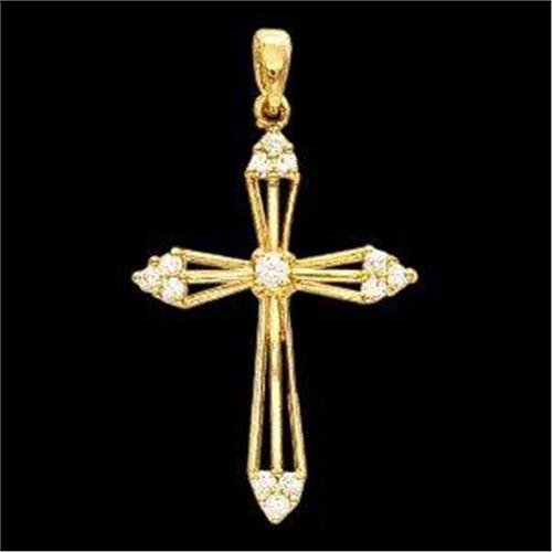 14k Yellow Gold Cross featuring 13 'Sparkling' round Diamonds. The Diamond Total Weight = .28 Carats! This VERY beautiful Diamond cross measures 28mm x 20mm and it IS in Mint condition.